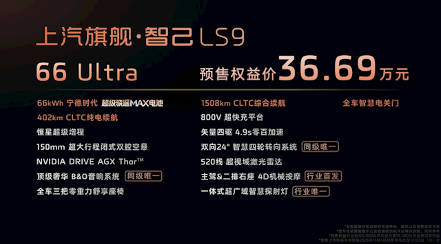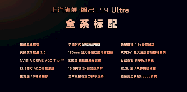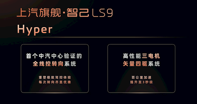 让人期待的是,LS9还拥有Hyper版,将具备线控转向、高性能三电机矢量四驱系统,零百加速提升至3秒级,预计明年初上市。
